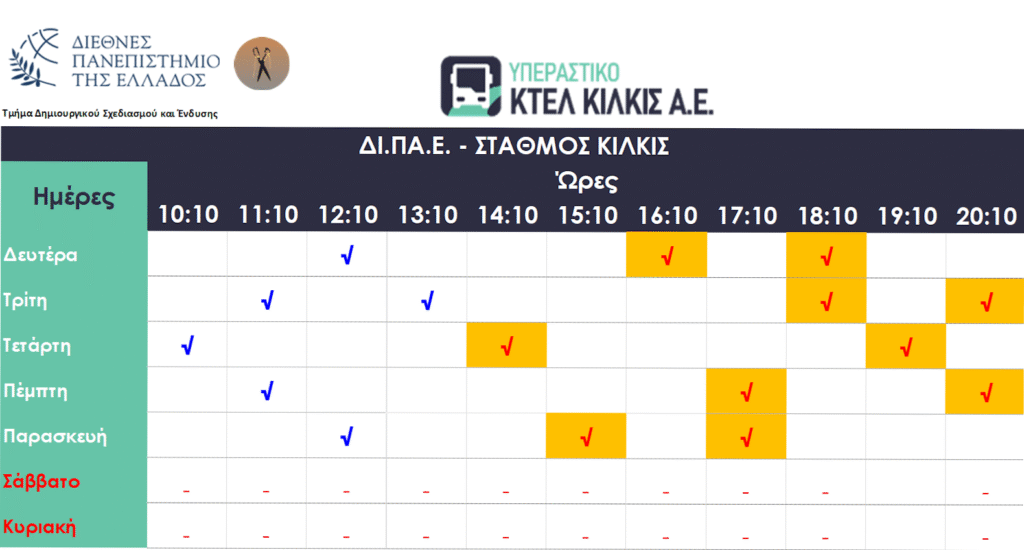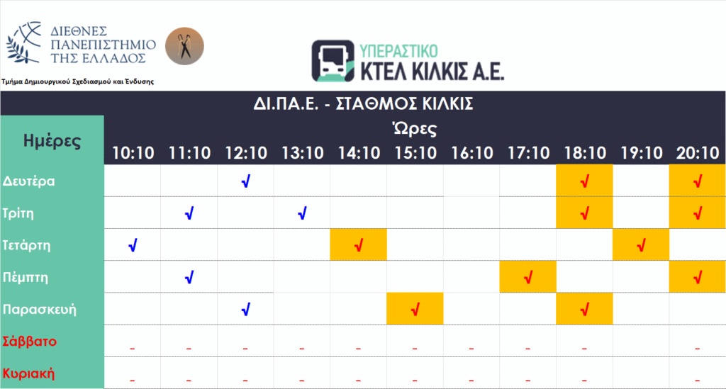 Τα δρομολόγια με κόκκινο τικ (✓) είναι ήδη πληρωμένα από το ίδρυμα