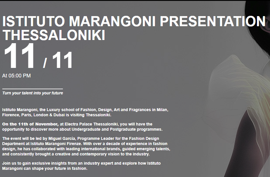 Το Istituto Marangoni, ένα από τα κορυφαία ιδρύματα μόδας και σχεδίου παγκοσμίως, διοργανώνει παρουσίαση στη Θεσσαλονίκη με θέμα:
